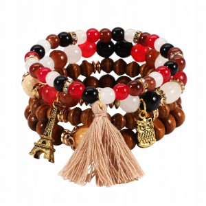 Bransoletka Zestaw 4 Sztuk Kolorowe Koraliki Zawieszka na Gumce Regulowana