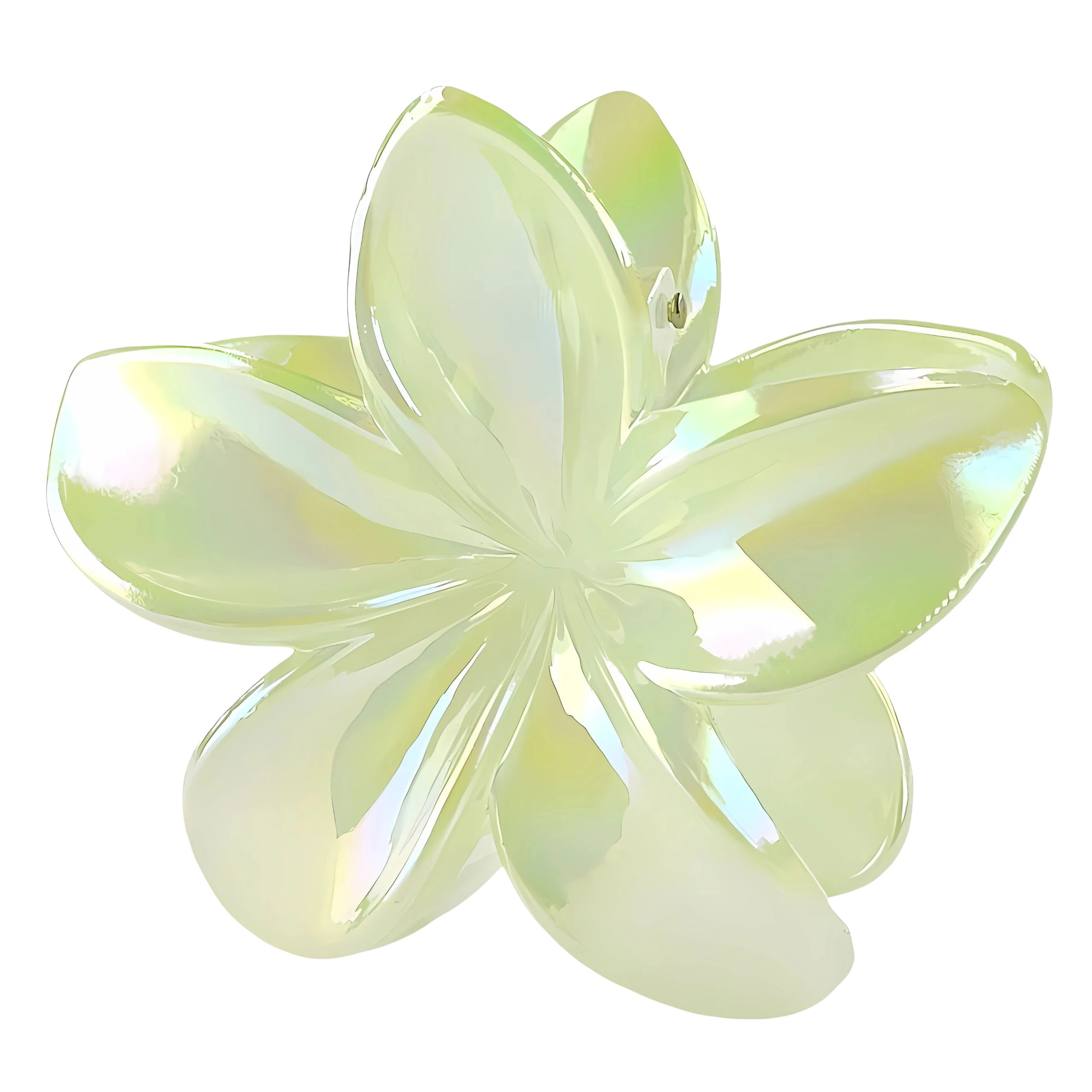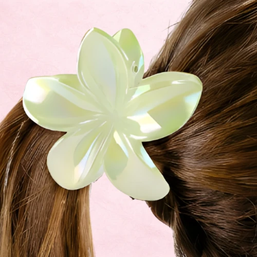 ❤️ Marzysz o dodatku, który łączy świeżość natury z magicznym, perłowym blaskiem? Ta wyjątkowa, opalizująca klamra w kształcie egzotycznego kwiatu to absolutny hit, który doda energii każdej Twojej stylizacji! Jej subtelny, limonkowy odcień i dopracowany kształt płatków sprawiają, że zwykłe upięcie nabiera nowoczesnego, niemal baśniowego charakteru. To dodatek, który nie tylko stabilnie trzyma włosy, ale staje się najbardziej efektowną ozdobą Twojego looku. Co dostajesz? ✔ Egzotyczny design – kształt inspirowany kwiatem plumerii, który dodaje fryzurze lekkości i wyjątkowego wdzięku. ✔ Efekt opalizacji – wysokiej jakości tworzywo pięknie mieni się pod wpływem światła, tworząc wielobarwną, limonkowo-perłową poświatę. ✔ Solidne wykonanie – mocna metalowa sprężyna gwarantuje, że klamra pozostanie na swoim miejscu przez cały dzień, dbając o Twój komfort i styl.