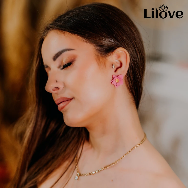 ❤️ Postaw na odważny kolor i florystyczną energię w kompaktowym wydaniu! Te wyjątkowe kolczyki w kształcie pojedynczego kwiatu w soczystym odcieniu fuksji z bogato zdobionym, złotym środkiem to kwintesencja radosnego stylu boho. Ich intensywna barwa oraz precyzyjnie wymodelowana forma sprawią, że każda Twoja stylizacja nabierze wyrazistości, charakteru i unikalnego, kobiecego blasku. Co dostajesz? ✔ Soczysta fuksja – niezwykle energetyczny i modny odcień płatków, który natychmiast ożywia twarz i dodaje pewności siebie w każdej sytuacji. ✔ Złoty blask – lśniący, teksturowany środek kwiatu o nieregularnej formie stanowi luksusowy akcent, który idealnie kontrastuje z intensywnym różem płatków. ✔ Komfort noszenia – dzięki piórkowej wadze (zaledwie 2 g) kolczyki są niemal niewyczuwalne, co pozwala cieszyć się ich blaskiem przez cały, intensywny dzień.
