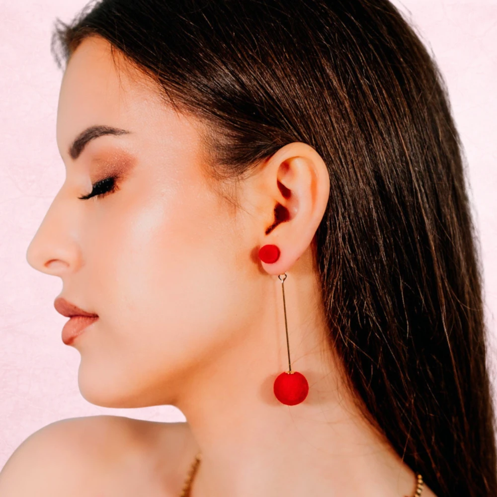❤️ Pragniesz dodać swojej stylizacji nutę radosnej energii i nowoczesnego, zabawnego szyku? Te wyjątkowe kolczyki to absolutny must-have dla każdej kobiety, która kocha biżuterię o niebanalnej strukturze i wyrazistej formie! Połączenie lśniących, złotych elementów z miękkimi, czerwonymi kuleczkami z pluszu tworzy niezwykle stylową kompozycję, która przyciąga spojrzenia i dodaje twarzy niesamowitego blasku. Co dostajesz? ✔ Unikalna struktura – miękki plusz w kolorze soczystej czerwieni to materiał, który nadaje biżuterii wyjątkowego, "ciepłego" charakteru, idealnie przełamując surowość metalu i dodając stylizacji oryginalności. ✔ Nowoczesna forma – asymetryczne ułożenie kuleczek na długim, złotym druciku to kwintesencja współczesnych trendów, która optycznie wysmukla szyję i dodaje lookowi dynamiki. ✔ Niezwykła lekkość – mimo imponującej długości 7 cm, kolczyki ważą zaledwie 2 g, co sprawia, że są niemal niewyczuwalne na uchu, zapewniając pełen komfort noszenia przez cały dzień.