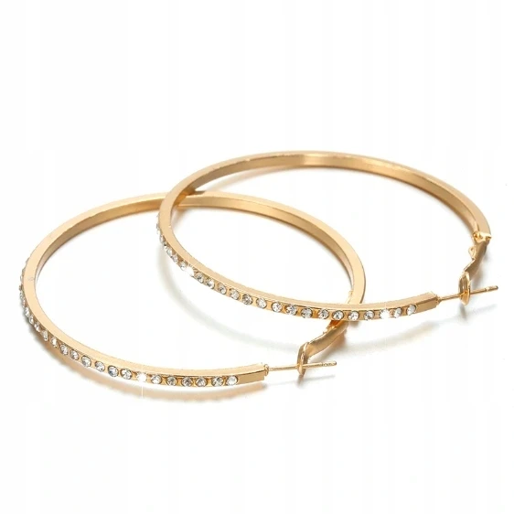 ❤️ Postaw na spektakularny blask w luksusowym wydaniu! Te efektowne kolczyki koła, wysadzane na całym obwodzie lśniącymi cyrkoniami, to biżuteryjny klasyk, który spektakularnie rozświetla twarz. Ich złocista oprawa w połączeniu z kryształowym blaskiem dodaje każdej stylizacji wyrafinowanego charakteru i elegancji w stylu glamour. Co dostajesz? ✔ Biżuteryjny kunszt – precyzyjnie osadzone cyrkonie tworzą linię światła, która przyciąga wzrok i zachwyca blaskiem przy każdym ruchu. ✔ Szlachetne wykończenie – połączenie złota i czystości kryształów nadaje kolczykom luksusowego wyglądu, idealnego na wyjątkowe okazje. ✔ Pełen komfort – mimo swojej okazałej formy, kolczyki są zaprojektowane tak, aby zapewniać wygodę noszenia, będąc niemal niewyczuwalnymi na uchu.