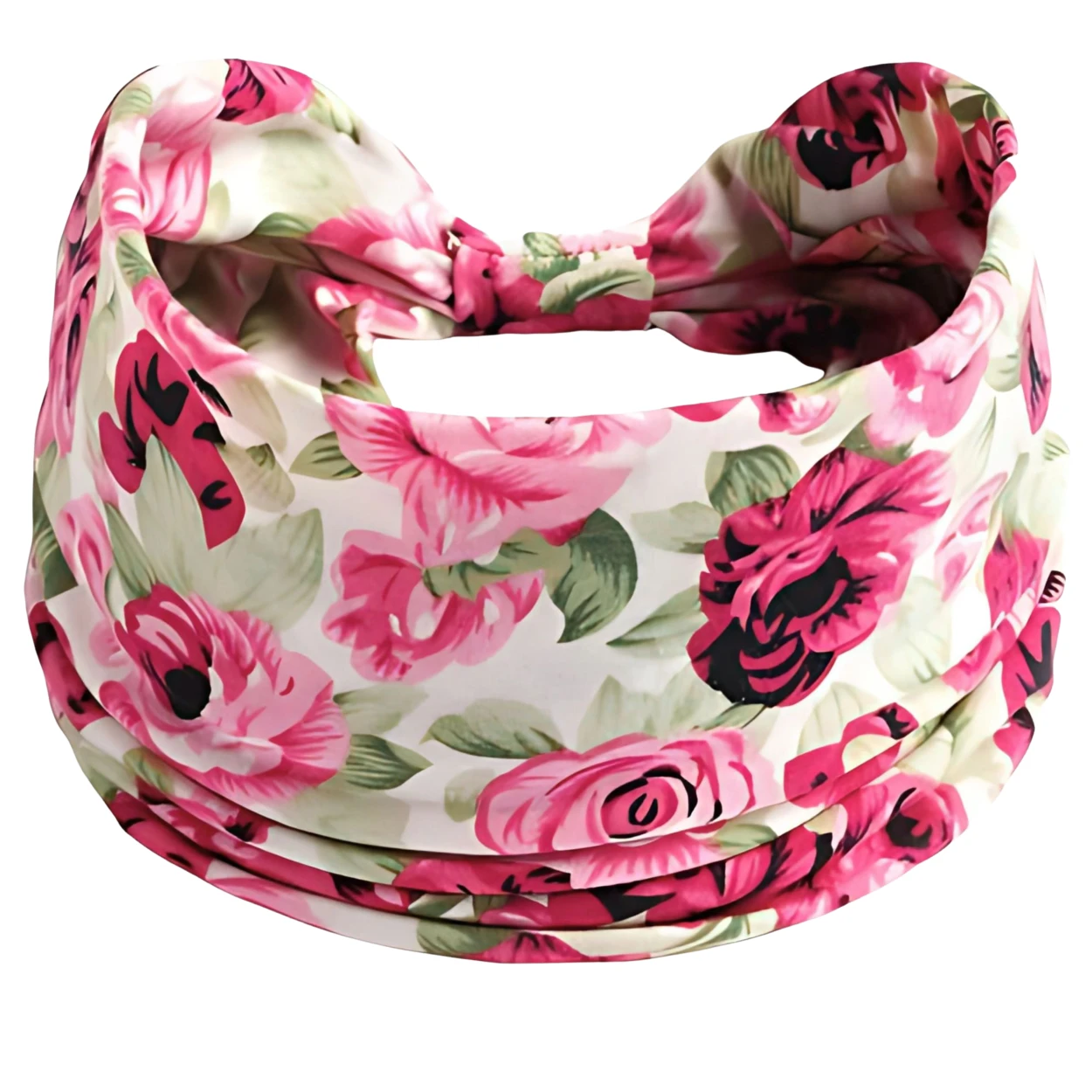 Opaska na głowę szeroka różowa z supłem na włosy - miękka, nie uciska