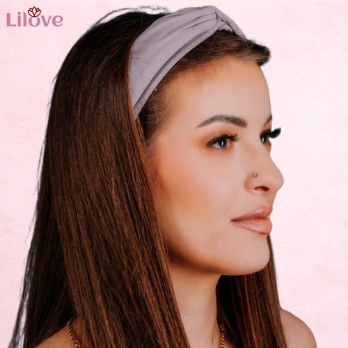 Opaska na głowę szeroka szara z supłem do włosów - wygodna, nie uciska