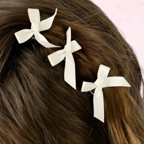 Spinki do włosów kremowe 10 sztuk z satynowymi kokardami - subtelne